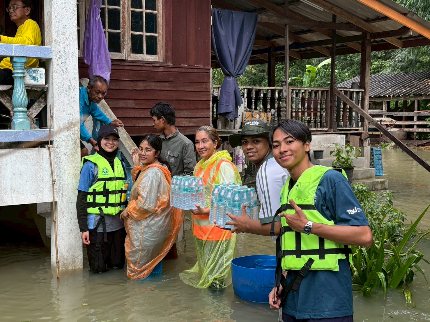 ในแต่ละพื้นที่ ทีมอาสามหาวิทยาลัยได้พบผู้ที่ได้รับผลกระทบจำนวนมาก ทั้งบ้านเรือนที่ถูกน้ำท่วมขัง ถนนบางเส้นทางไม่สามารถสัญจรได้ตามปกติ รวมถึงความเสี่ยงด้านสุขภาพที่เริ่มปรากฏจากสภาพน้ำที่เปลี่ยนแปลง การส่งมอบทั้งสิ่งของและข้อมูลความปลอดภัยจึงเป็นอีกหนึ่งภารกิจสำคัญที่มหาวิทยาลัยให้ความใส่ใจ